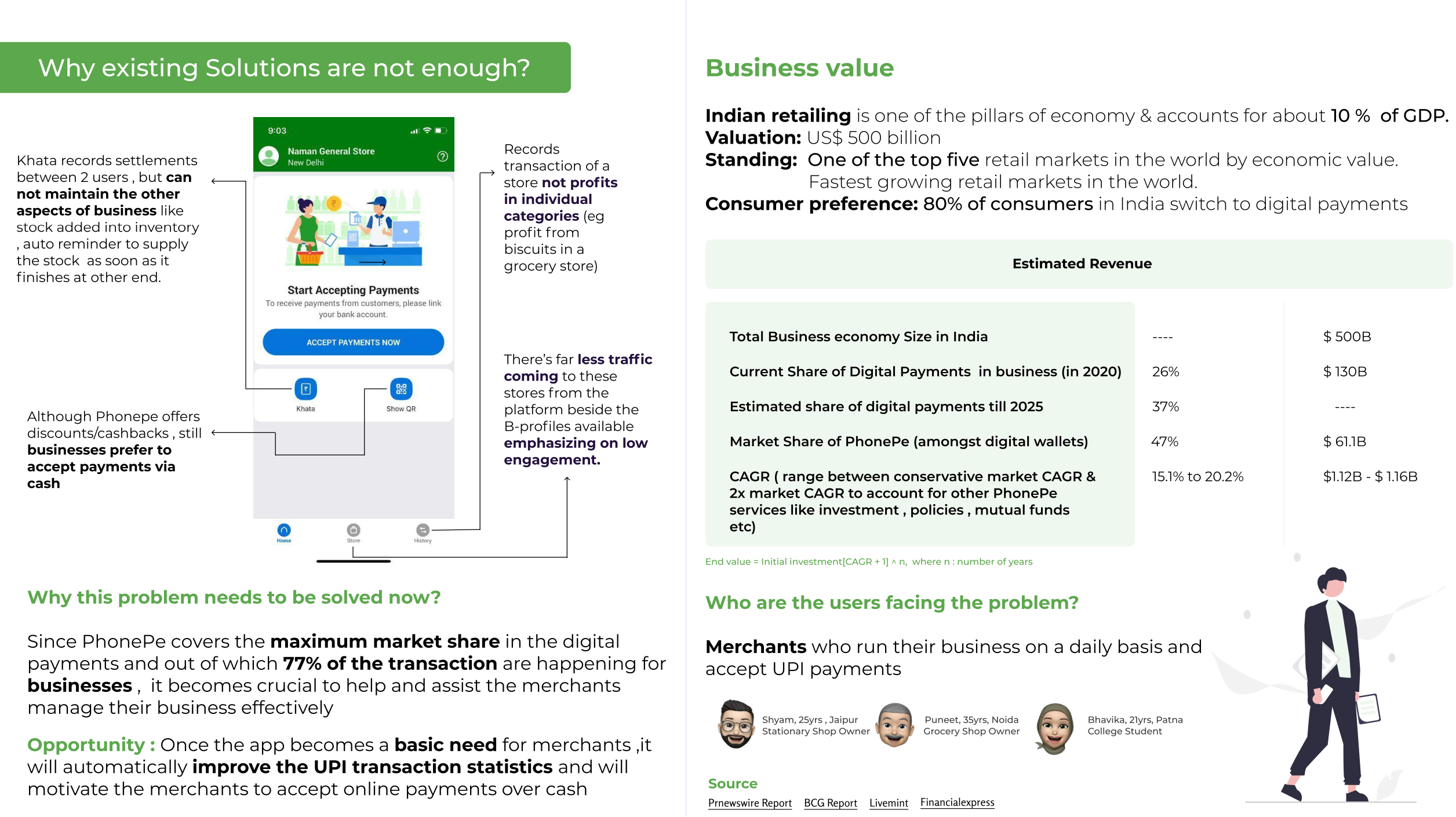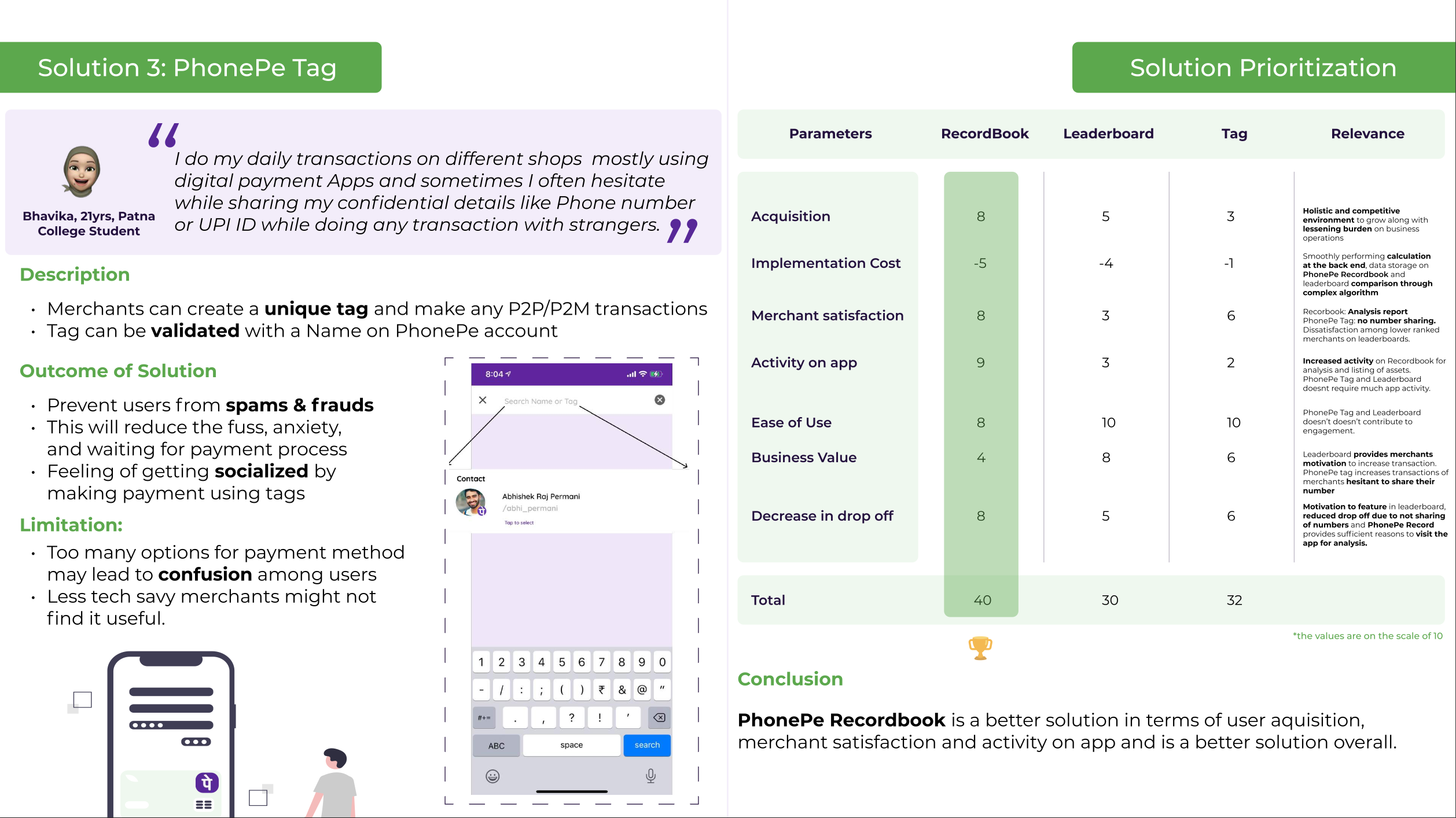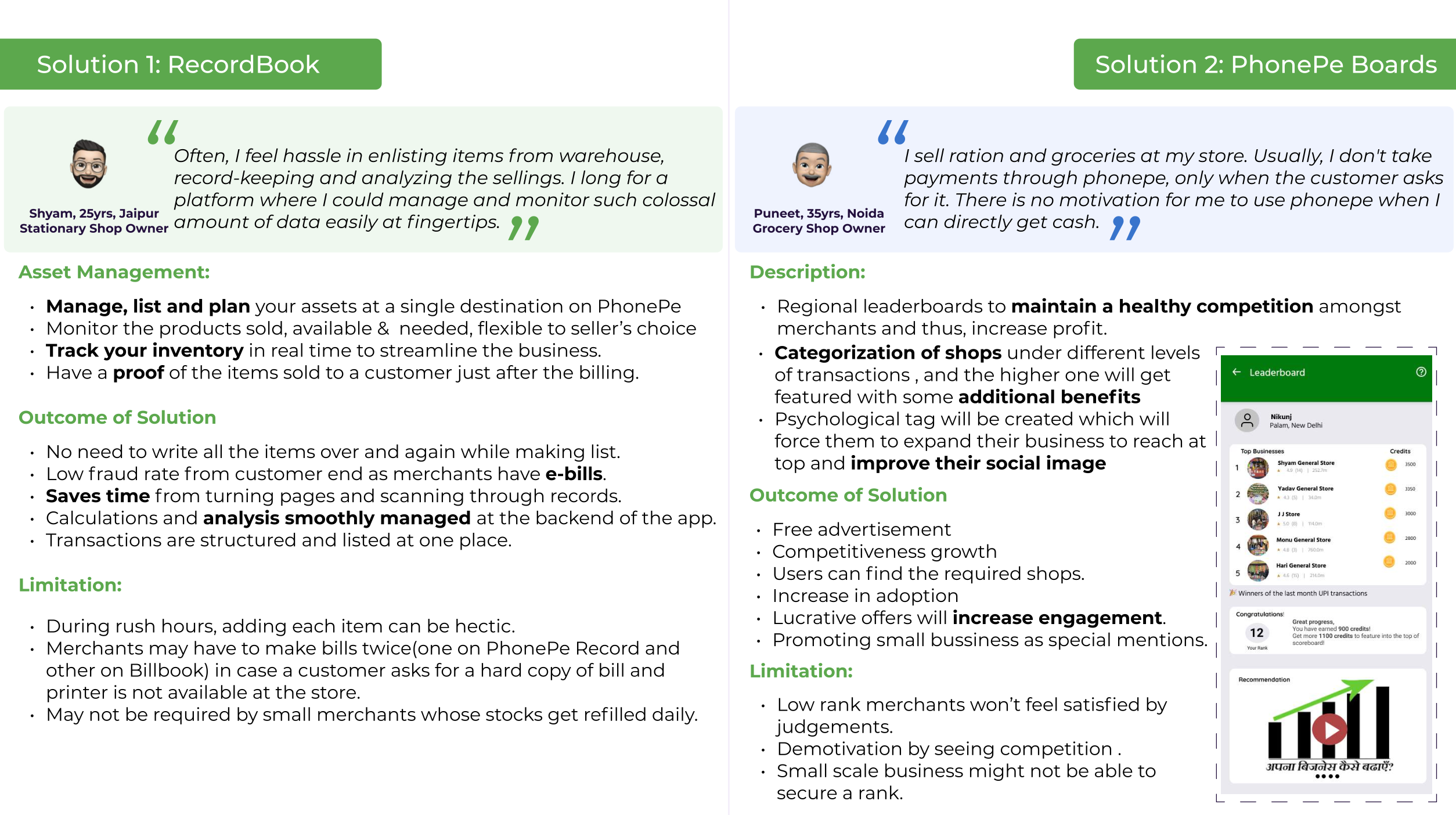 Worked on the PhonePe Business App for Merchants. The idea was to enhance the Business-only App to help merchants manage their operations more efficiently. I suggested several features that could aid in daily business growth, streamline digital transactions, and improve record-keeping with minimal hassle. Achieved a score of 262/300 for this initiative.